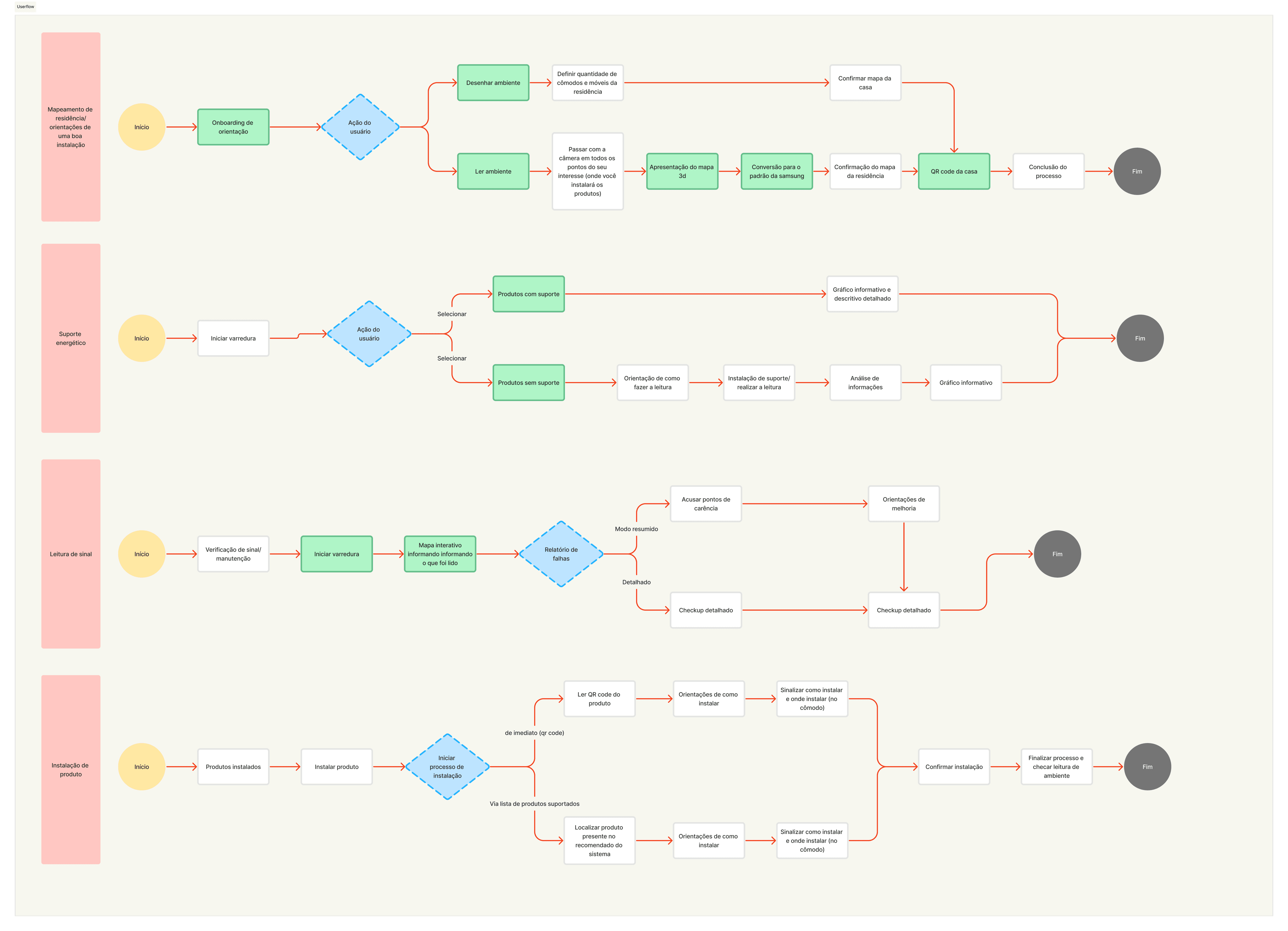 Contextualizando e entendendo sobre os processos entregues pela Samsung, foi colhido pontos de carência em relação a uma entrevista com usuário (hard user). E, com base nele, foi feito um levantamento de desejos/objetivos a serem alcançados no futuro.