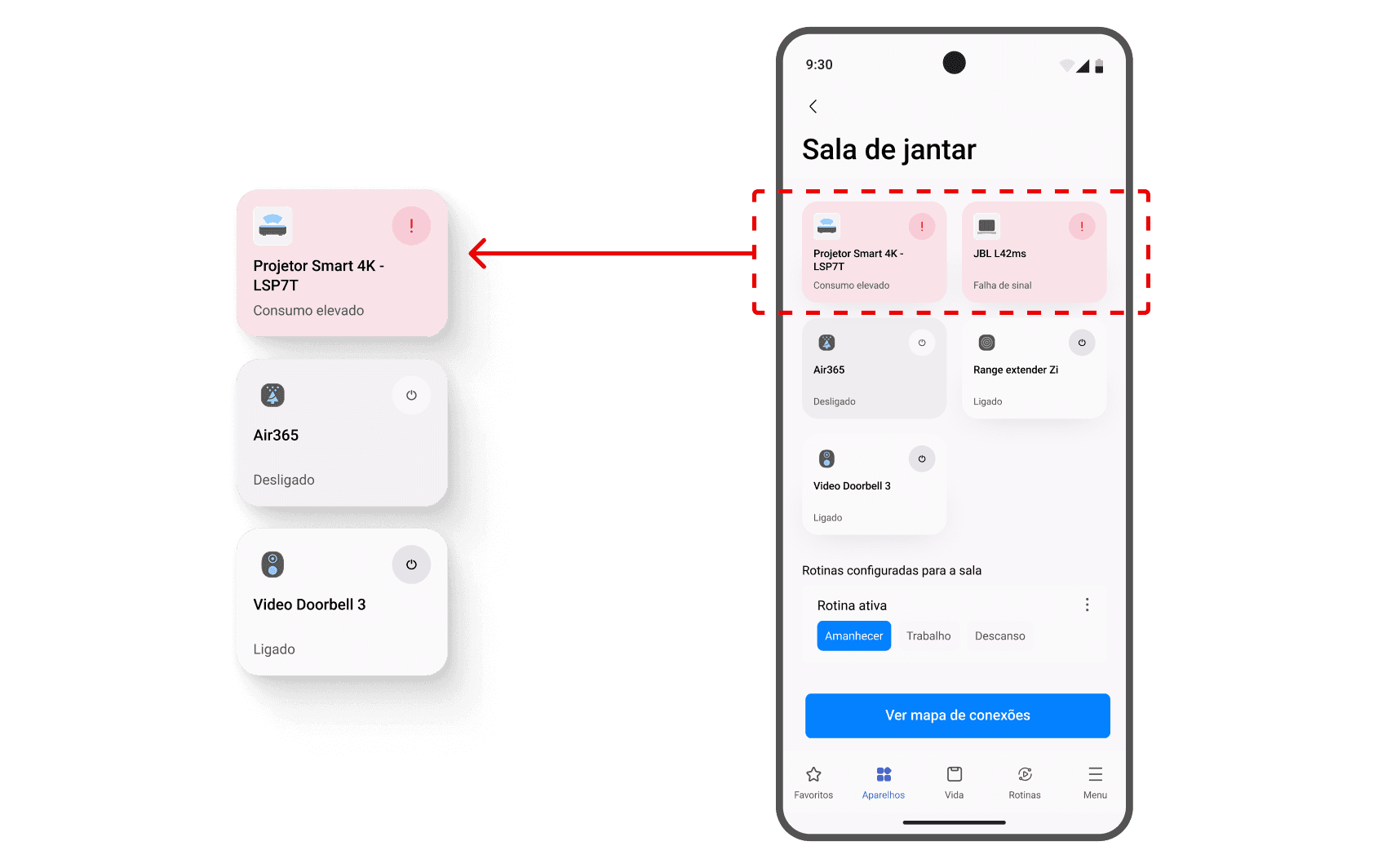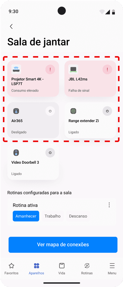 Verificação constante dos aparelhos conectados em busca de alguma falha de rede e sinalização de reparo.
